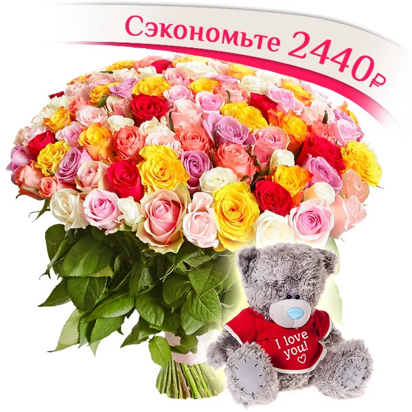 51 роза: роза разноцветная - 51 шт. (высота розы - 50 см),