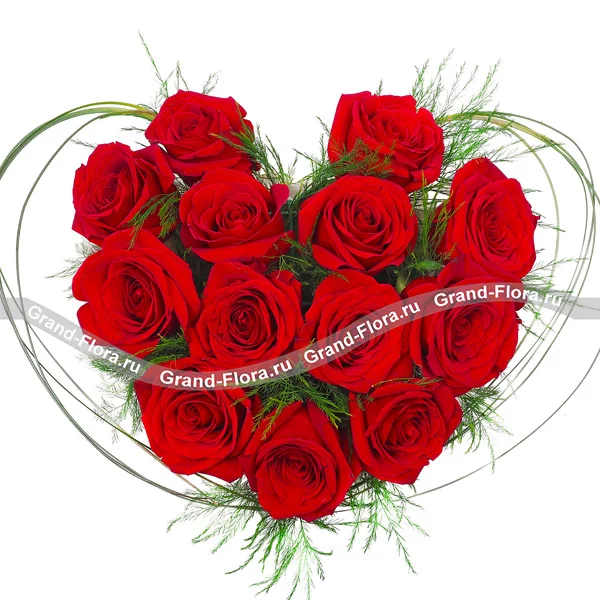 Великолепная композиция, выполненная на оазисе из красных роз в виде сердца. Идеальный подарок, который расскажет все о Ваших чувствах.