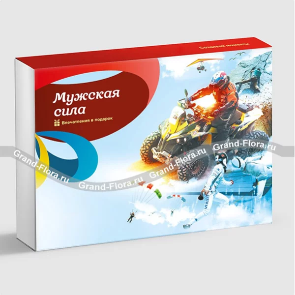 В подарочный набор входит сертификат на одно из впечатлений на выбор: скалолазание, каратэ, полет в аэротрубе, прогулка на парусной яхте и т.д.